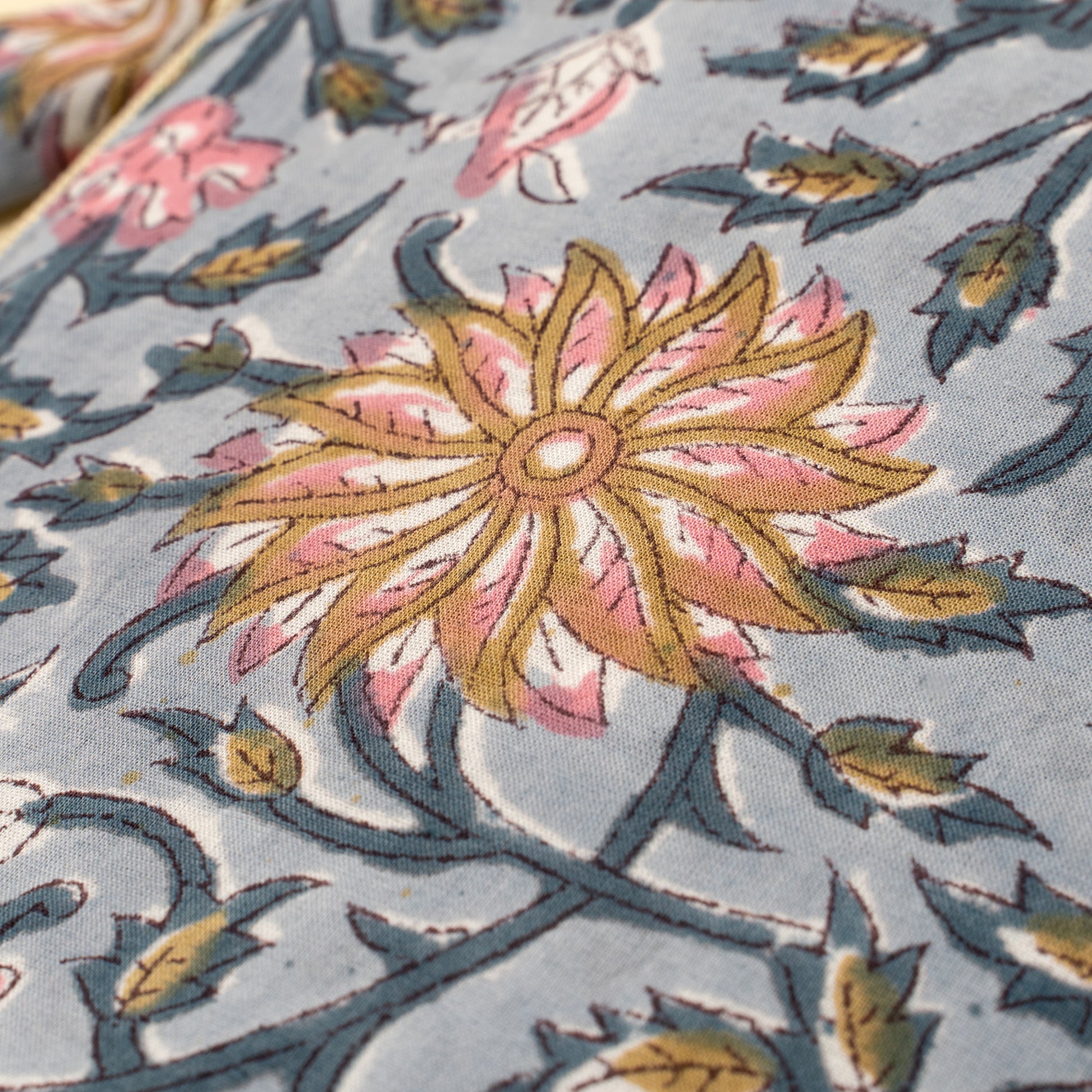 Hand block printed cotton with a soft, durable lining.