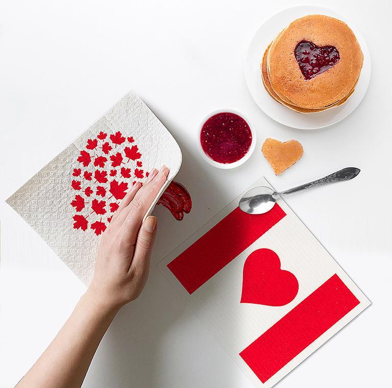 Show your love of Canada with this fun set of Canada Flag & Heart Amazing Swedish Dishcloths. A 100% biodegradable cotton/cellulose mix, these reusable Swedish-made dishcloths are as durable as they are eco-friendly. Each one replaces up to 15 rolls of paper towel – great for use at home, the office or at the cottage. Washing machine and dishwasher safe.