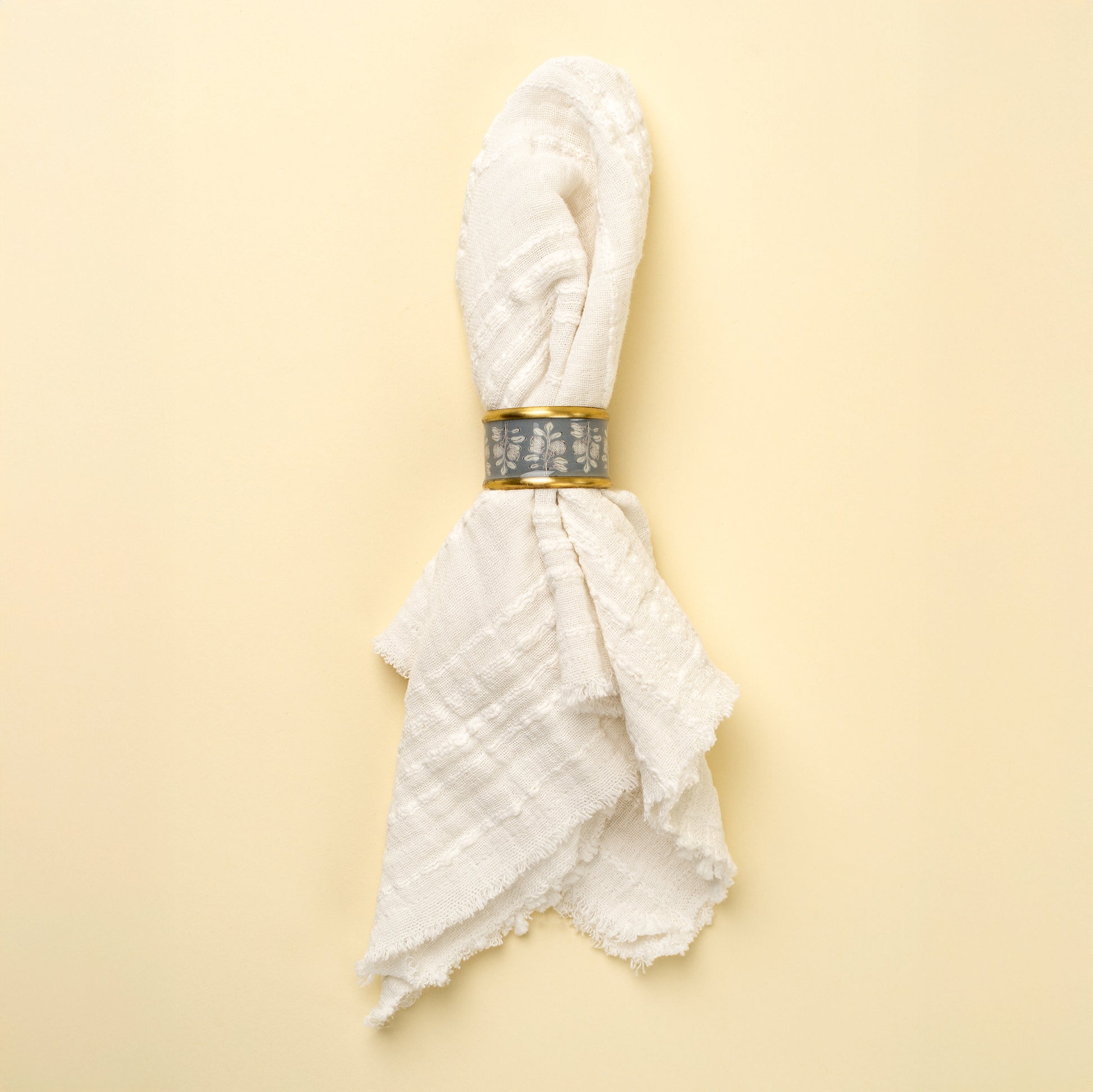 An Artisan Accent for a Stylish Dining Table Add a touch of handcrafted elegance to your dining table with the Arbor Enameled Napkin Ring. Inspired by Indaba’s hand block printed pillows, each ring features a delicate botanical motif digitally transferred from fabric and finished with a vintage enamel glaze. With cool colours it brings quiet charm to everyday dining and special occasions alike.
