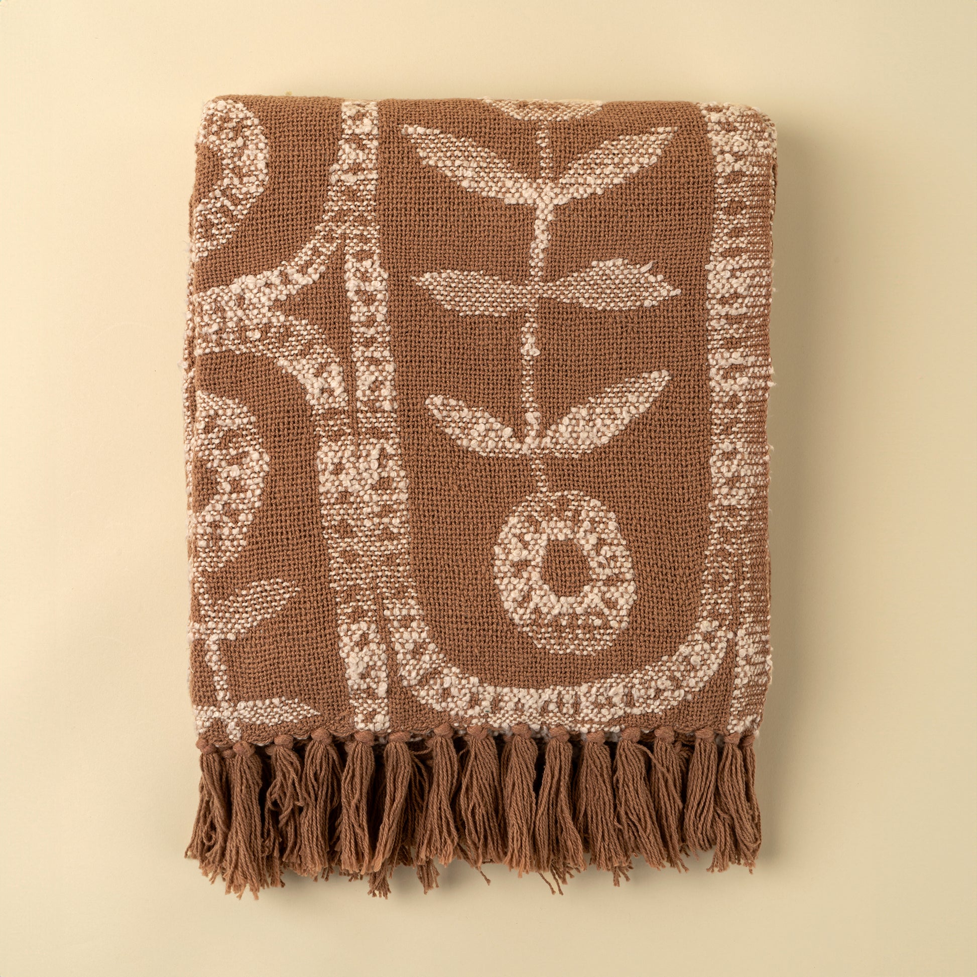 Bring warmth and artisan charm to your space. Woven from thick, textured cotton and finished with hand-knotted tassels, this handcrafted blanket adds visual interest and comfort to any room. The floral design is subtly playful yet sophisticated, making it a timeless accent piece youโll reach for again and again.