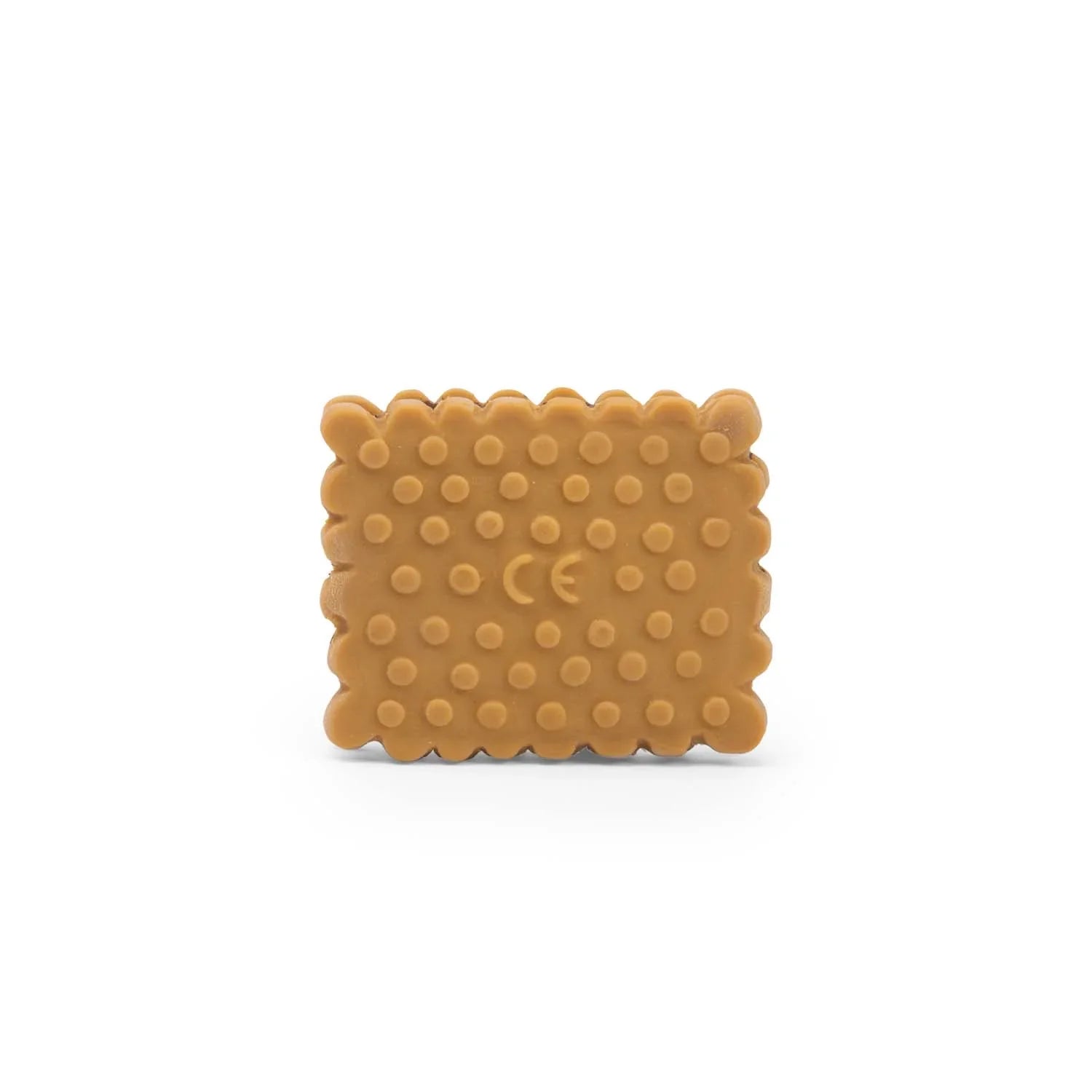 Moulin Roty's Biscuit Puce & Pilou teething toy is made from 100% natural rubber, made from Hevea sap. It can be chewed to soothe the baby's first teeth, or used for bath time play.
