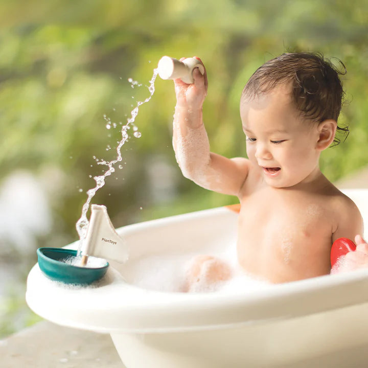 Ready to swim in your bath or water play scenarios. Sail off to sea with the Polar Bear Sailing Boat!
