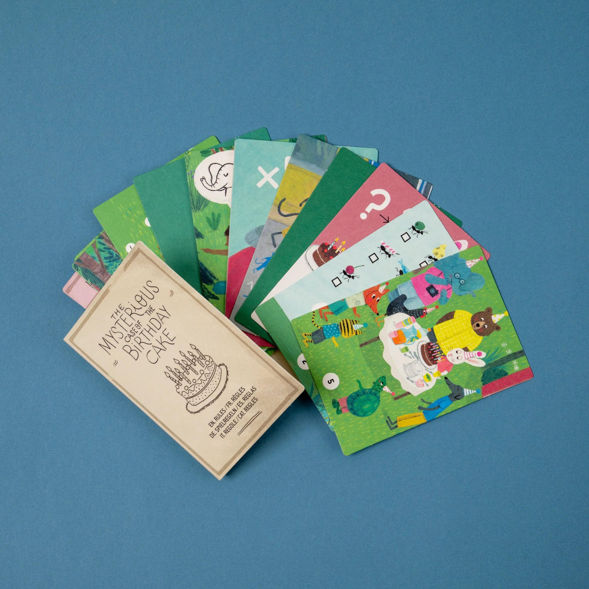 A 100-piece puzzle with a detective game. Includes 15 deduction cards to solve the birthday cake mystery. An original puzzle with a clue game.