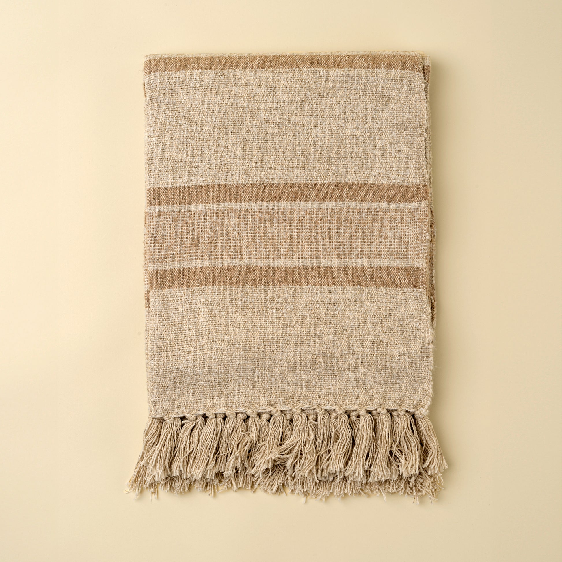 Tulum Striped Throw, Clay, A Handcrafted Blanket Throw with Laid-Back Texture Effortlessly stylish, the Tulum Striped Throw brings relaxed elegance to any space. Handcrafted with a soft blend of cotton, linen, and viscose, this blanket throw features classic stripes and a cozy, textured weave that feels both elevated and inviting. Finished with hand-knotted fringe, it offers just the right touch of beachy charm.