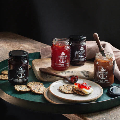 Handmade with love with quality ingredients on Salt Spring island, Salt Spring Kitchen Co. has been spreading the love for jams, preserves and hot sauces to elevate your everyday meal since 2012. Perfect for pairing with cheese and charcuterie or spreading liberally on your favourite sandwiches, keep a couple in your fridge and give your friends something to rave about!